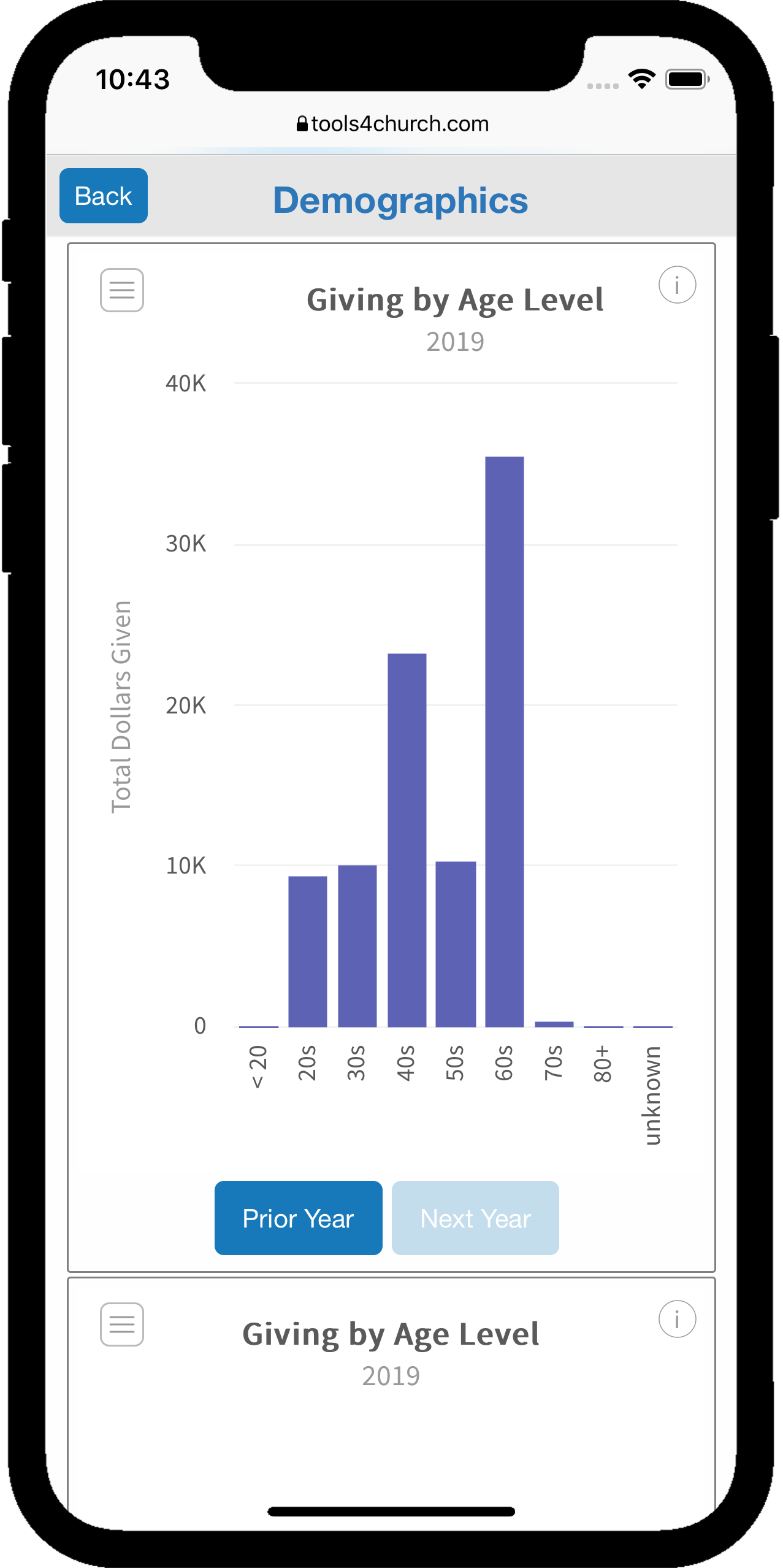 View giving demographics and trends in easy-to-understand charts and graphs. Identify new, lapsed, and top givers with a click.